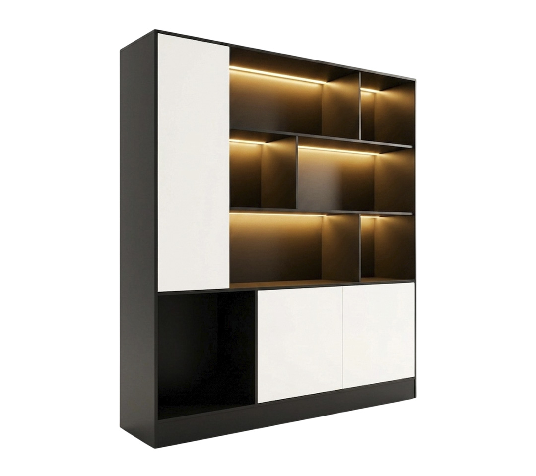 La Biblioteca presidencial doha deluxe es la máxima expresión de sofisticación y orden para el entorno ejecutivo moderno. Diseñada para imponer presencia en despachos presidenciales y oficinas de alto nivel, esta pieza combina una arquitectura geométrica contemporánea con una solución de iluminación integrada que transforma el ambiente de trabajo.