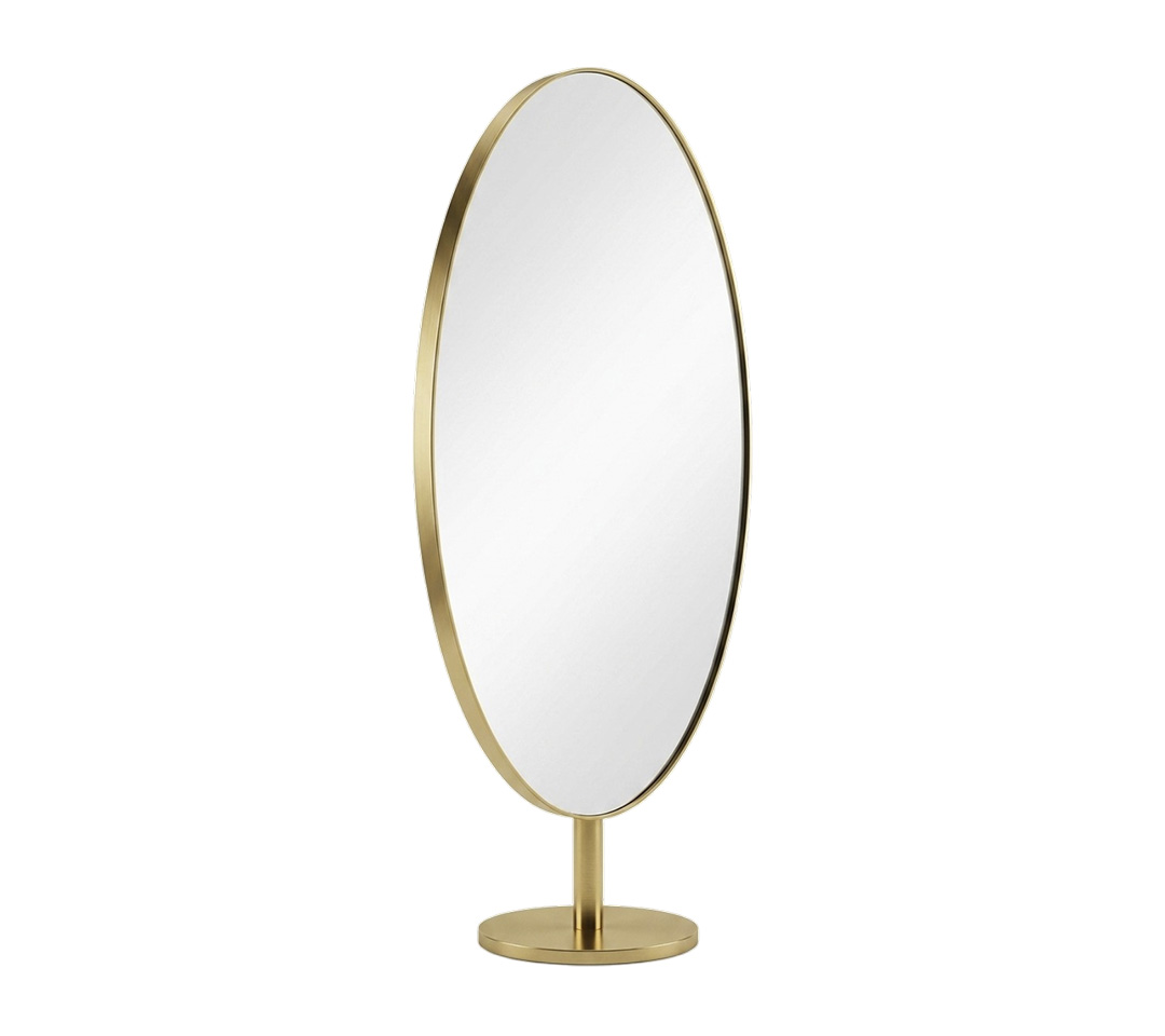 Diseño estructural: Silueta ovalada de gran formato con un pedestal central sólido que garantiza estabilidad y un giro visual de 360 grados.