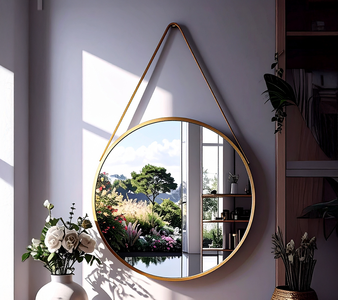 - Colgado con Estilo: La correa de cuero sintético en color a juego no solo facilita su instalación, sino que también añade un detalle de diseño único y distintivo que lo diferencia de los espejos tradicionales.