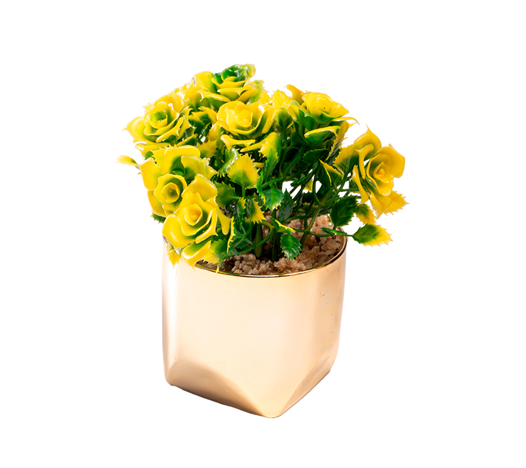 Caja de 06 Flores Artificiales con Materos de Cerámica