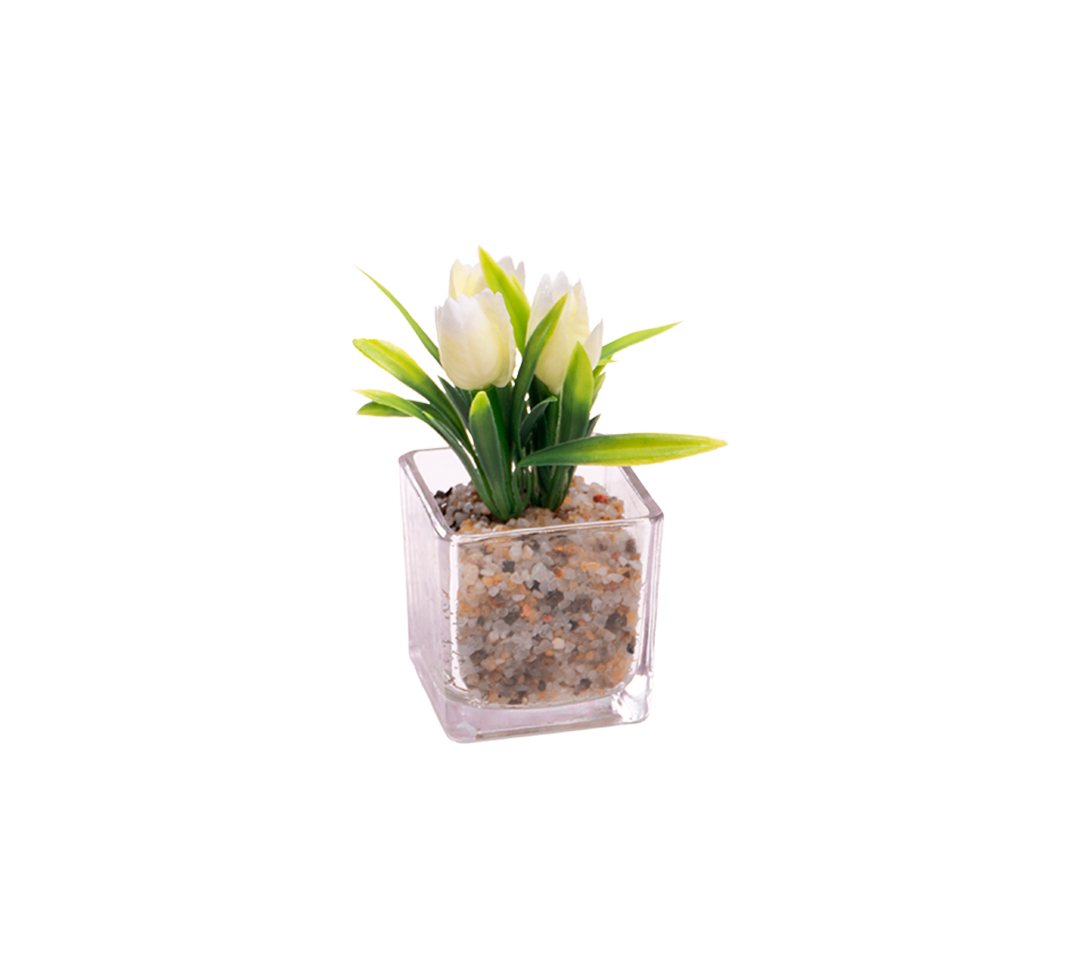 Caja de 12 Flores Artificiales con Materos de Vidrio