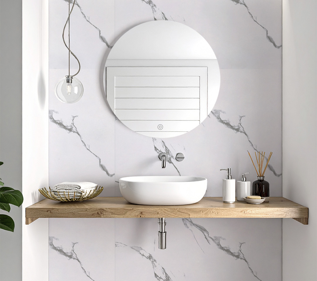 Transforma por completo tus interiores con nuestras Láminas de PVC, una alternativa vanguardista y versátil a los revestimientos tradicionales. Ideales para renovar paredes, crear acentos decorativos o dar un nuevo aire a cualquier superficie en tu hogar o local comercial. Su diseño, que emula la sofisticación del mármol (como se aprecia en la imagen), o la calidez de la madera, las convierte en la opción ideal para proyectos que buscan estética, funcionalidad y durabilidad.