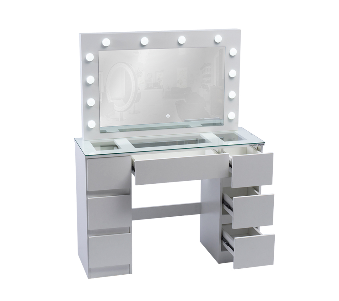 - Organización Eficiente: Los múltiples cajones permiten mantener todos tus productos de belleza organizados y al alcance.