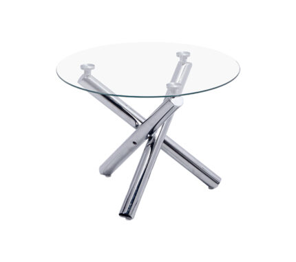 Con unas medidas de 60 cm de diámetro y 44 cm de altura, la Mesa de Centro Classic cuenta con una superficie de vidrio redonda y transparente que aporta ligereza y amplitud visual al ambiente. Su base de tres patas metálicas entrecruzadas en acabado cromado no solo garantiza estabilidad, sino que también añade un toque de modernidad y elegancia.