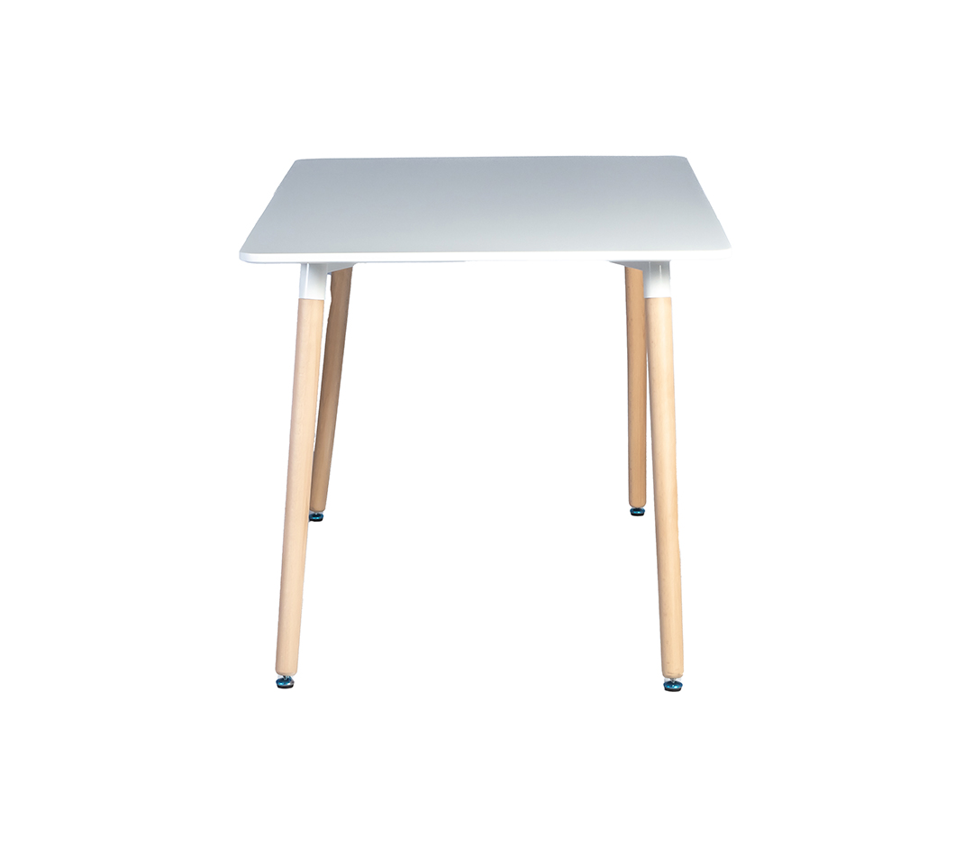 La MESA RETRO es una pieza que captura la esencia del diseño moderno, ofreciendo no solo una superficie para tus actividades diarias, sino también un elemento decorativo que realza cualquier espacio con su presencia. Su superficie lisa y cuadrada, acabada en un blanco puro, invita a la convivencia y la creatividad, mientras que sus patas de madera elegantes y robustas aportan un toque de calidez natural.