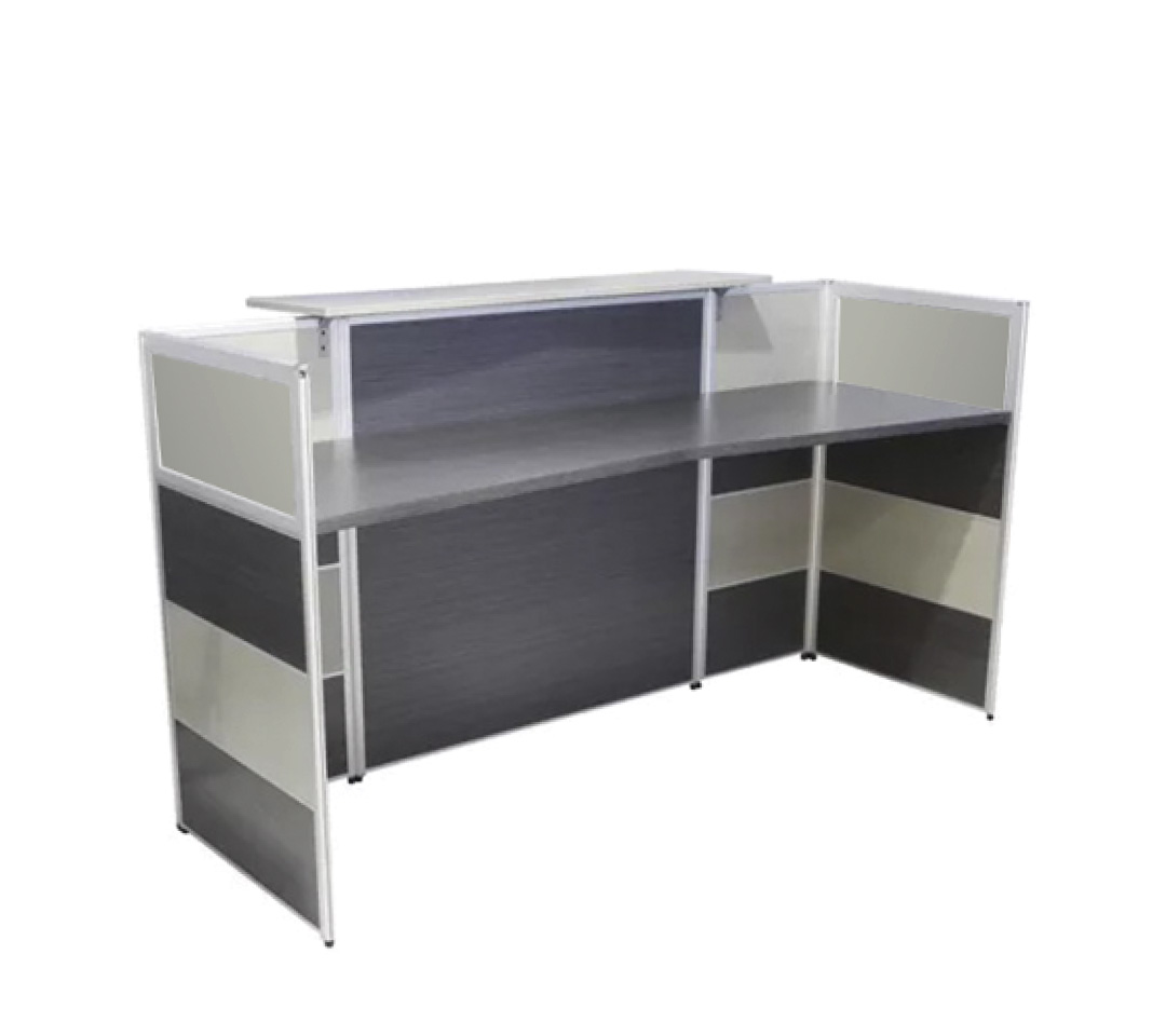 - Organización Integrada: Cuenta con una encimera elevada para facilitar las interacciones con los clientes y un amplio escritorio interno que permite la colocación de computadoras, sistemas telefónicos y el almacenamiento discreto de documentos y otros elementos esenciales.