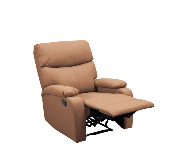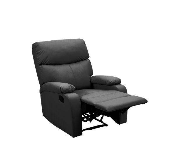 - Tapizado Premium: Vestida en un elegante material tipo cuero de color negro, la POLTRONA RECLINABLE ofrece una textura suave al tacto y una apariencia de alta gama.