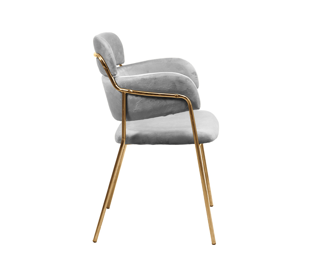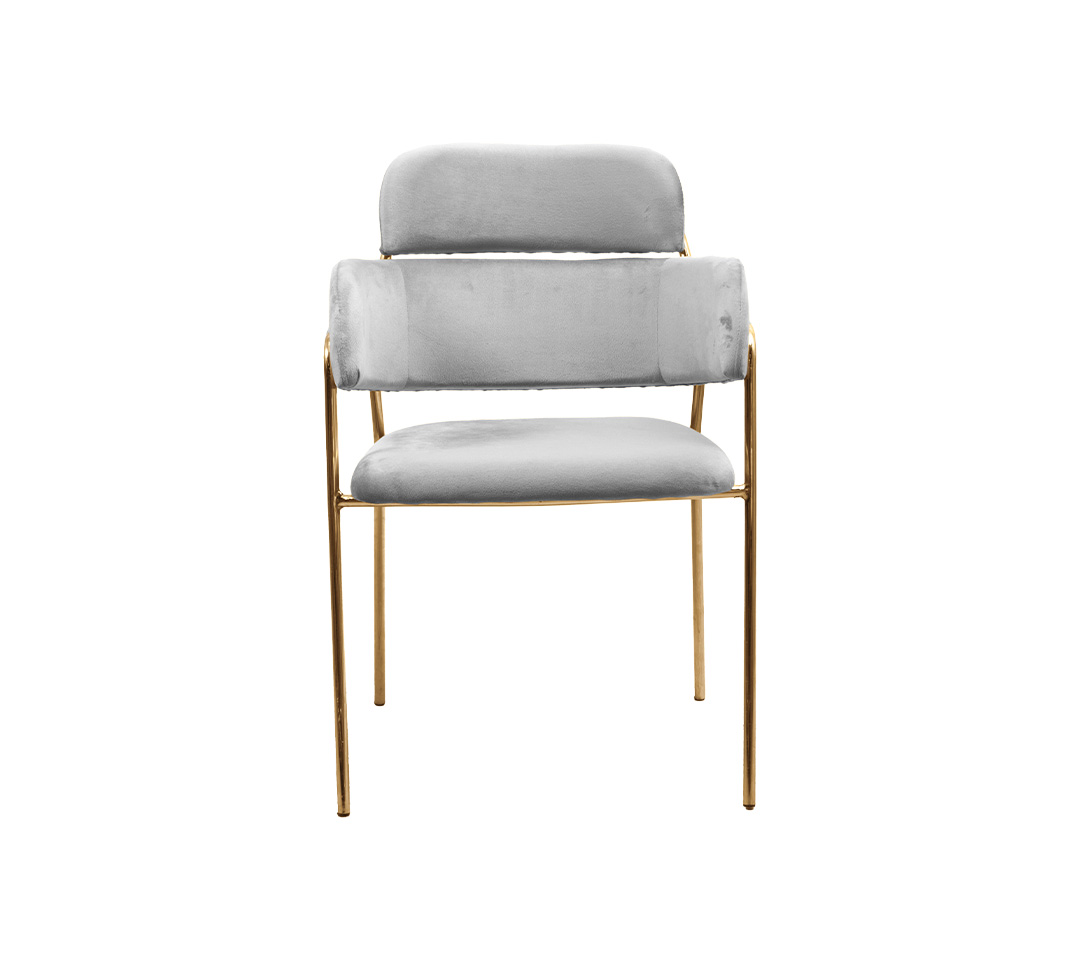 La Silla Chanell es una pieza moderna y sofisticada que aporta un toque de lujo a cualquier ambiente. Su diseño distintivo, tapizado en terciopelo y estructura metálica con acabado dorado, la convierten en una opción versátil para comedores, salas de estar y espacios comerciales.