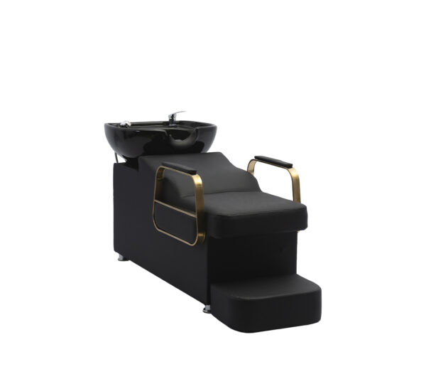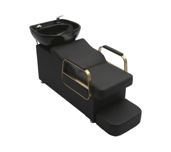 - Tapicería Premium: Revestida en cuero sintético de alta calidad (PU) en color negro, resistente al uso constante en salones, fácil de limpiar y con una durabilidad excepcional contra químicos y manchas.