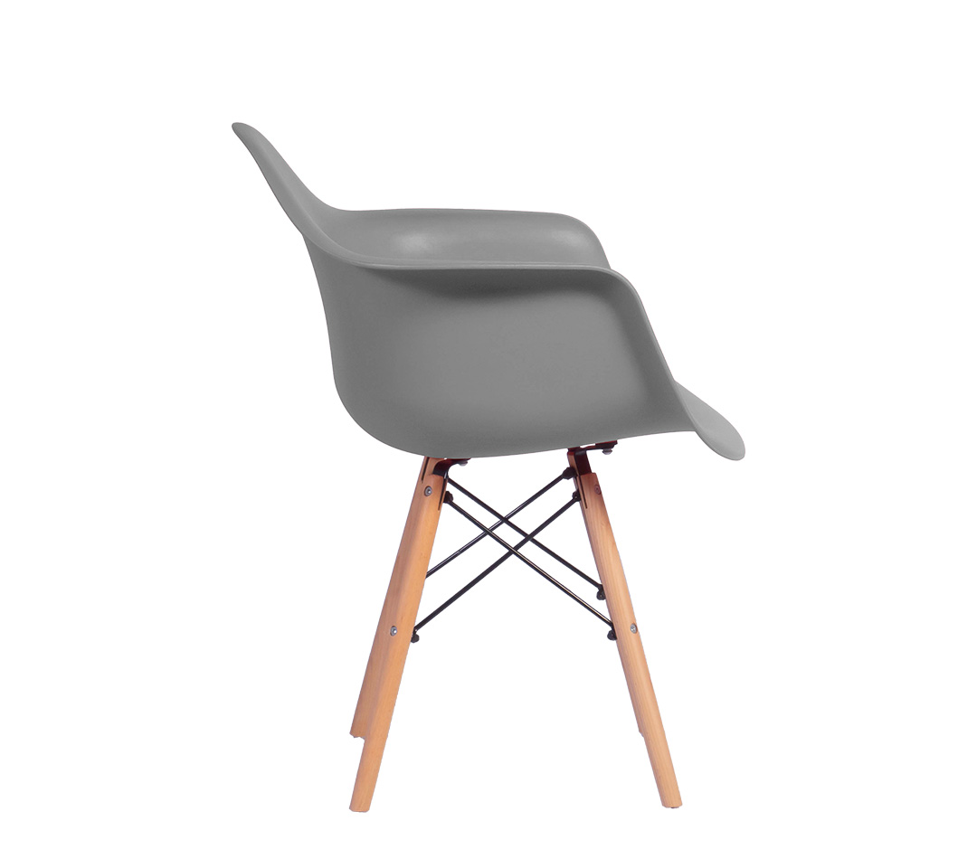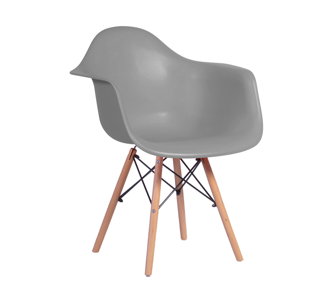 La SILLA EAMES CON BRAZOS es una obra maestra del diseño moderno que ofrece una combinación perfecta de funcionalidad y estilo. Con su asiento ergonómico de una sola pieza en color gris, esta silla no solo proporciona soporte y comodidad, sino que también se integra armoniosamente en cualquier espacio gracias a su estética elegante y contemporánea. Las patas de madera clara, inclinadas y unidas por varillas metálicas entrecruzadas, no solo garantizan estabilidad, sino que también aportan un toque distintivo al diseño.