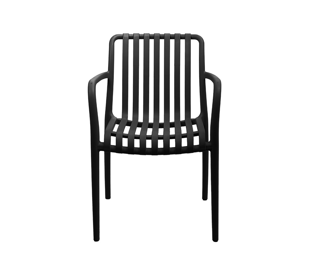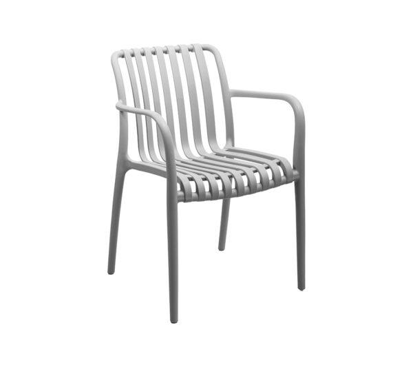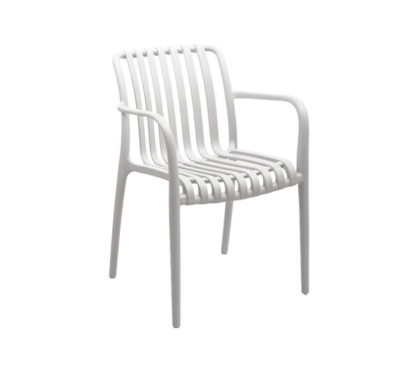 La Silla Hawai es una pieza versátil que combina resistencia y estética contemporánea. Su estructura ligera y su diseño de listones verticales en el respaldo y asiento la convierten en una opción ideal para interiores y exteriores.