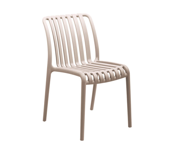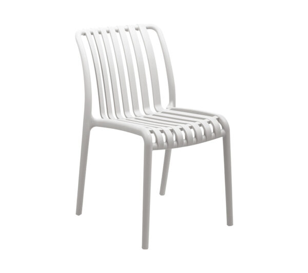 La Silla Hawai es una pieza versátil que combina resistencia y estética contemporánea. Su estructura ligera y su diseño de listones verticales en el respaldo y asiento la convierten en una opción ideal para interiores y exteriores.