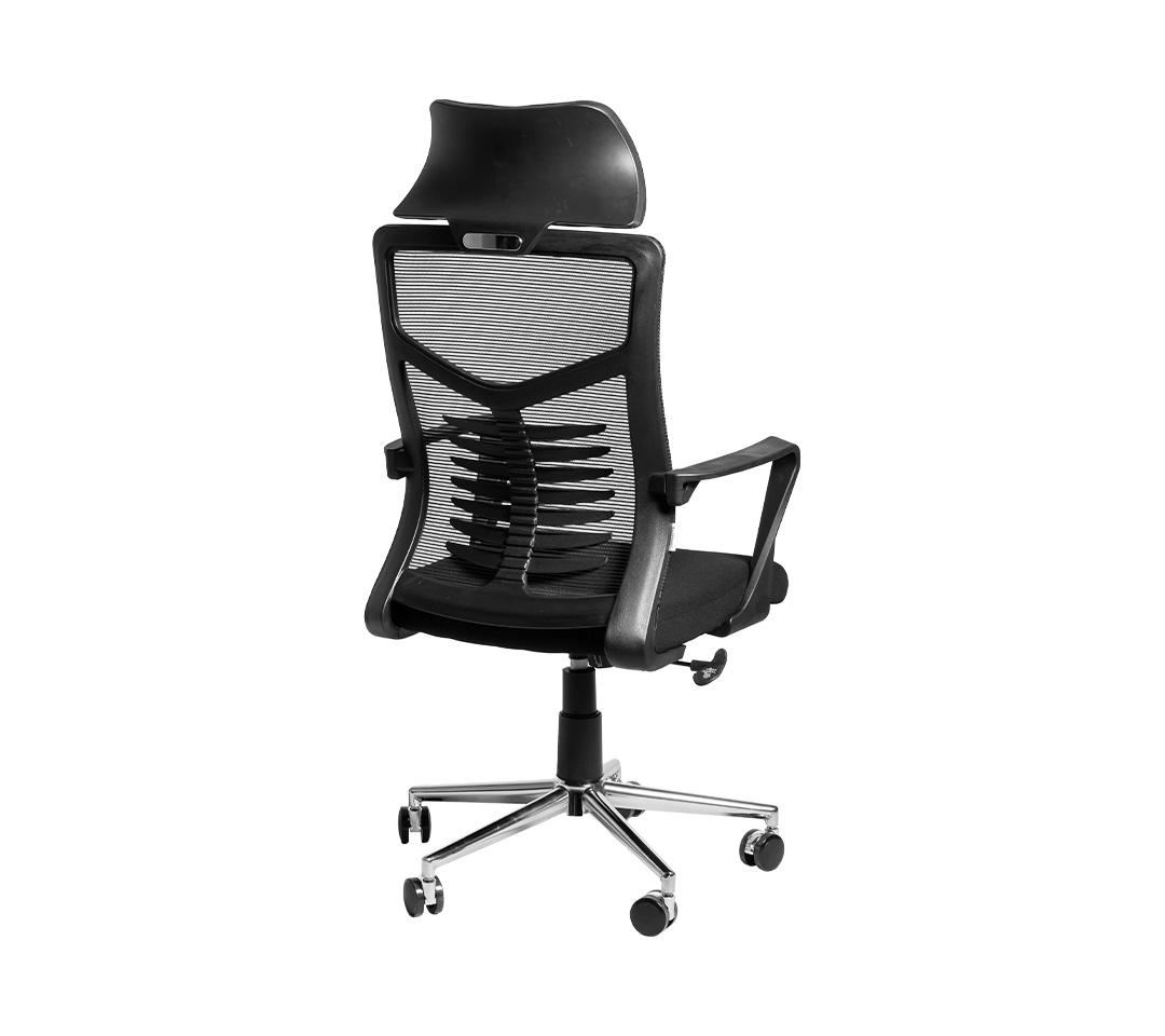 Descubre la comodidad y el estilo con nuestra silla de oficina ergonómica de alta gama. Diseñada para ofrecer soporte y confort durante largas jornadas de trabajo, esta silla cuenta con un respaldo alto y un reposacabezas ajustable, ambos fabricados con material de malla transpirable que favorece la circulación del aire.