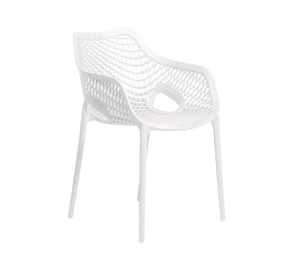 Este modelo se distingue por su respaldo y asiento de diseño único, compuesto por una malla intrincada que crea un efecto visual impresionante mientras proporciona soporte. Las patas son robustas y elegantes, garantizando estabilidad sin comprometer el estilo. La Silla Siesta es versátil y se adapta perfectamente tanto en un entorno doméstico moderno como en espacios comerciales sofisticados.