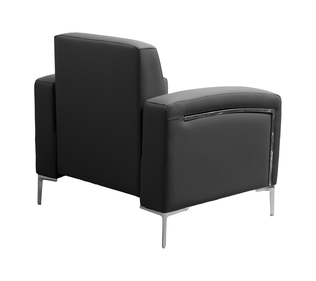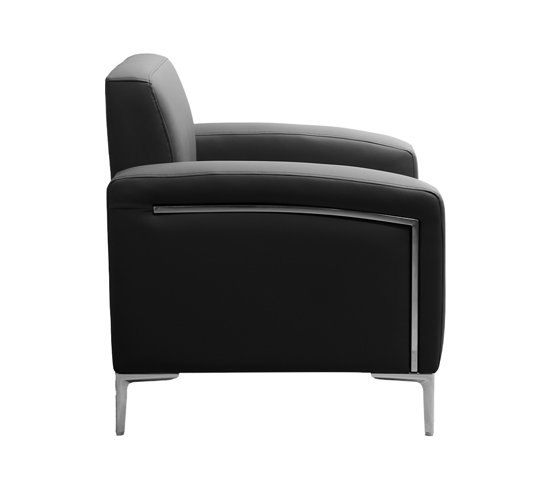- Diseño Elegante y Minimalista: Su forma rectangular, líneas limpias y la estructura metálica que se extiende desde los reposabrazos le dan una apariencia pulcra y contemporánea. Los detalles cromados aportan un toque de brillo y distinción.