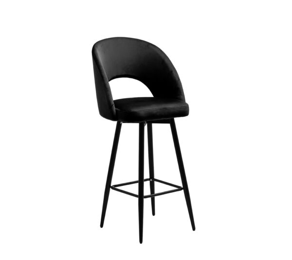 El TABURETE DE BAR ARIANA es una pieza de mobiliario que encapsula la elegancia y la funcionalidad. Su asiento de terciopelo negro, suave al tacto, ofrece una experiencia de confort sin igual, mientras que el respaldo curvo proporciona un soporte ergonómico, ideal para largas horas de uso. Las patas delgadas y altas, también en negro, crean una base estable y añaden un perfil estilizado y contemporáneo al diseño.