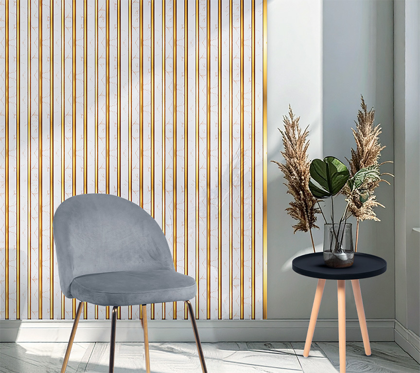- Estética Vanguardista con Detalles Únicos: Nuestros Wall Panels WPS presentan un diseño acanalado que aporta profundidad y dinamismo visual a cualquier pared. Algunos modelos, como el que se aprecia en la imagen, incorporan delicadas líneas de acento, simulando detalles metálicos o de color brillante, que añaden un toque de exclusividad y modernidad.