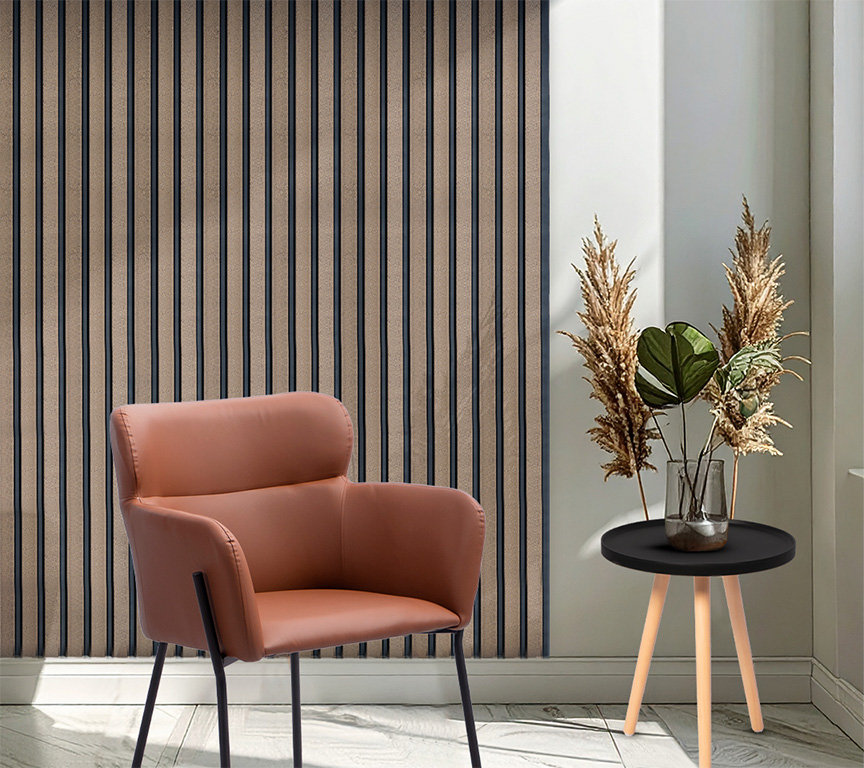 - Estética Vanguardista con Detalles Únicos: Nuestros Wall Panels WPS presentan un diseño acanalado que aporta profundidad y dinamismo visual a cualquier pared. Algunos modelos, como el que se aprecia en la imagen, incorporan delicadas líneas de acento, simulando detalles metálicos o de color brillante, que añaden un toque de exclusividad y modernidad.